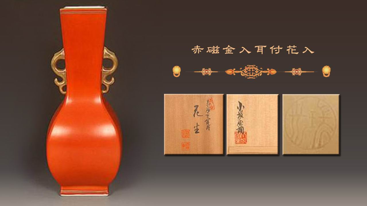 赤磁金入耳付花入