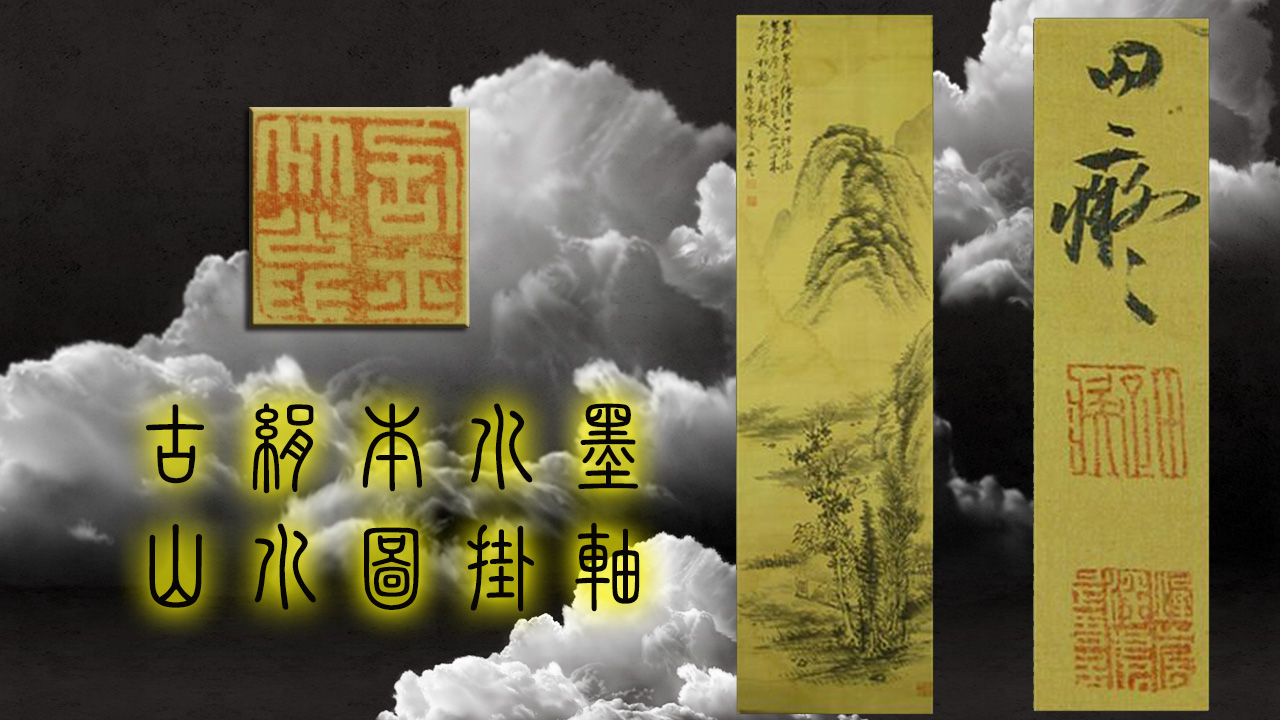 古絹本水墨山水圖掛軸