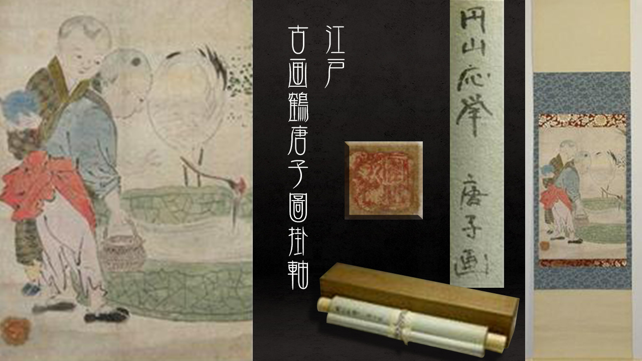 商品說明:古畫"鶴唐子圖",繪畫的題材細膩描繪仙鶴的身姿,唐朝孩子注視仙鶴。