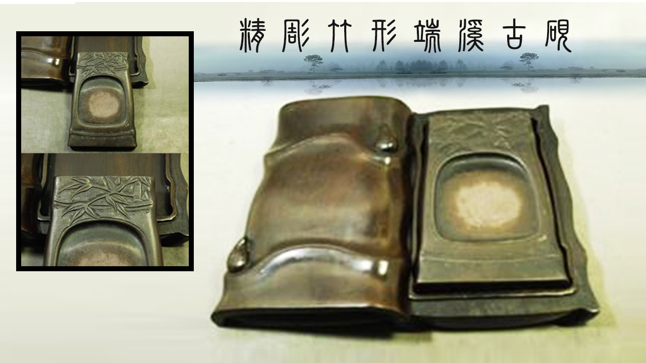 精雕竹形端溪古硯